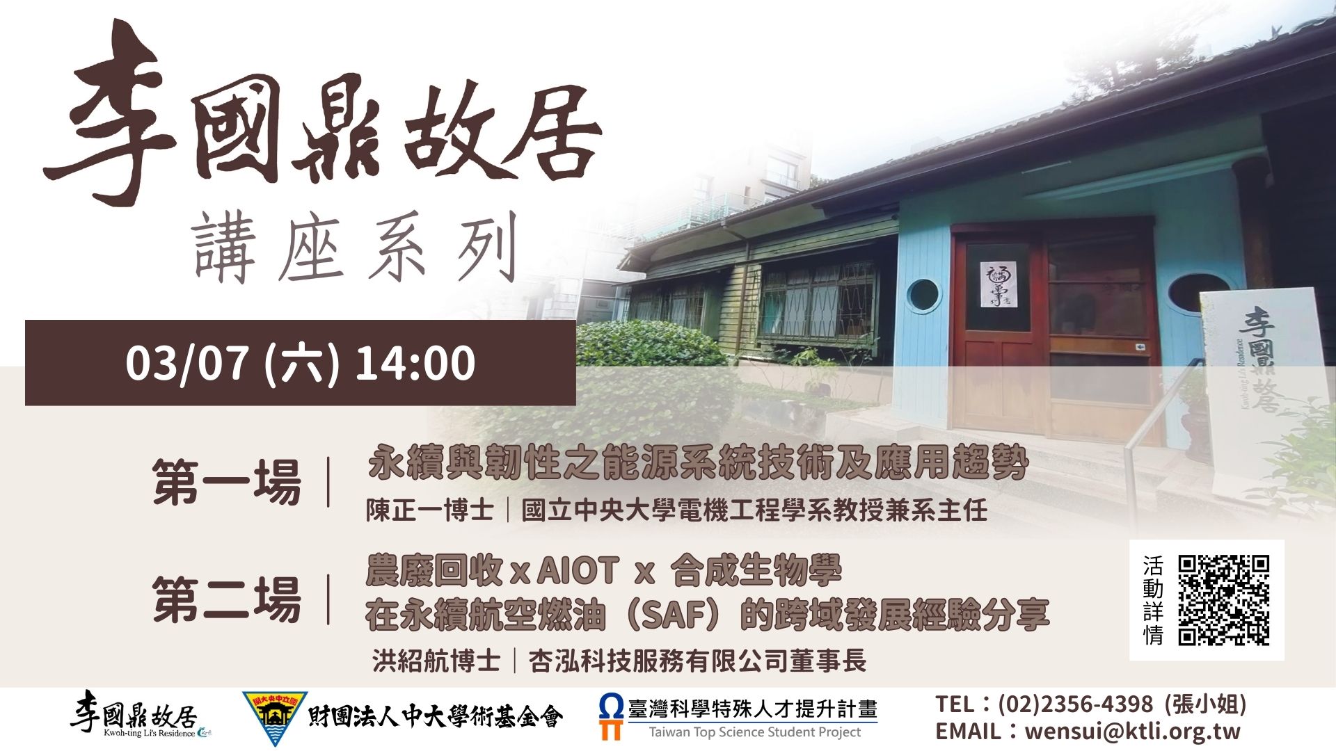 函轉「2026李國鼎故居講座系列一」活動資訊,請貴校惠予協助公告並宣傳,請查照。